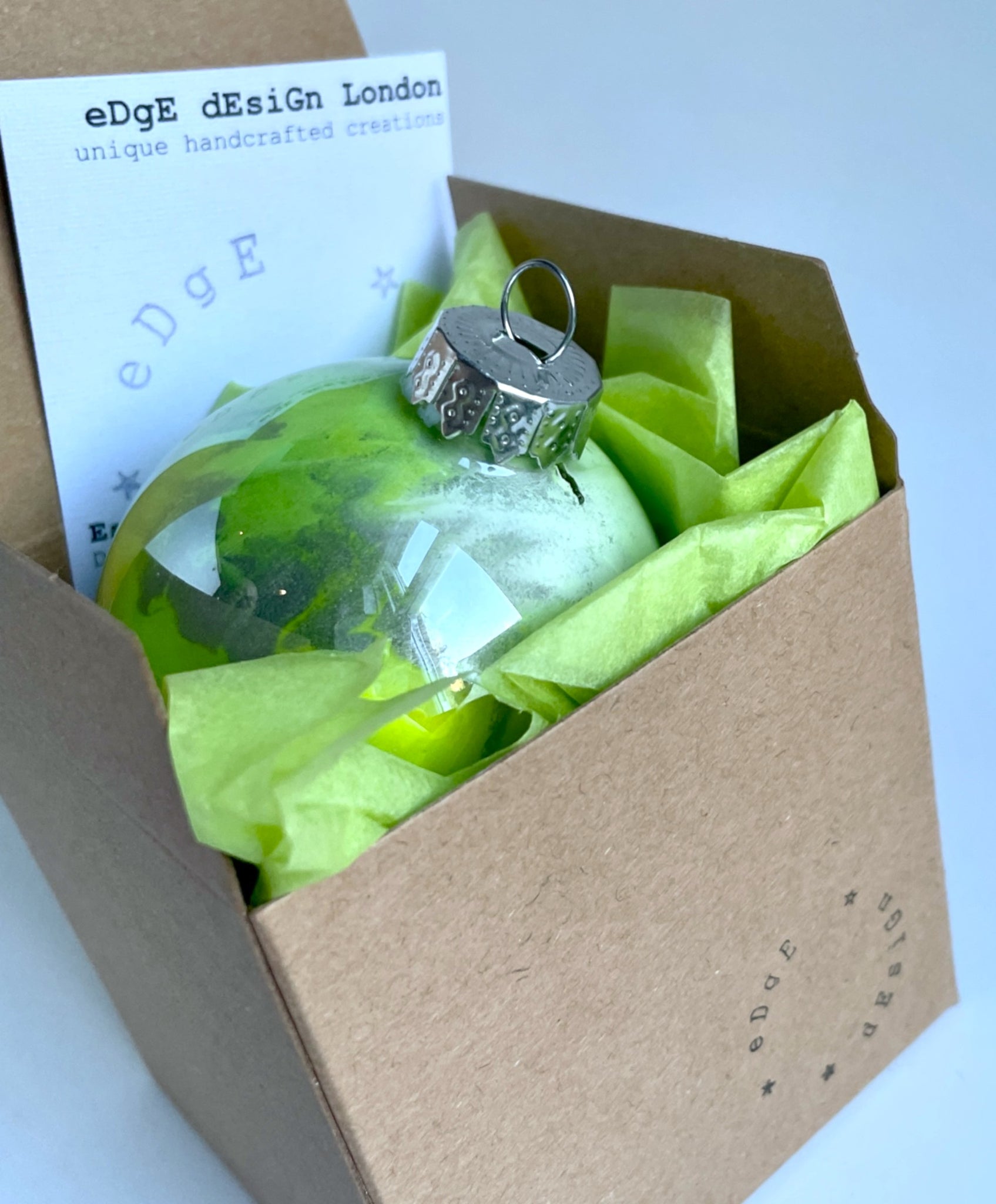 Each bauble comes in a gift box protected by tissue paper and a ribbon as shown. Ribbon colours can be changed upon request. Please note that the colours on the baubles may differ slightly due to monitor settings. Your selection of baubles will be shipped within 1-2 working days. All items will be shipped in protective packaging.