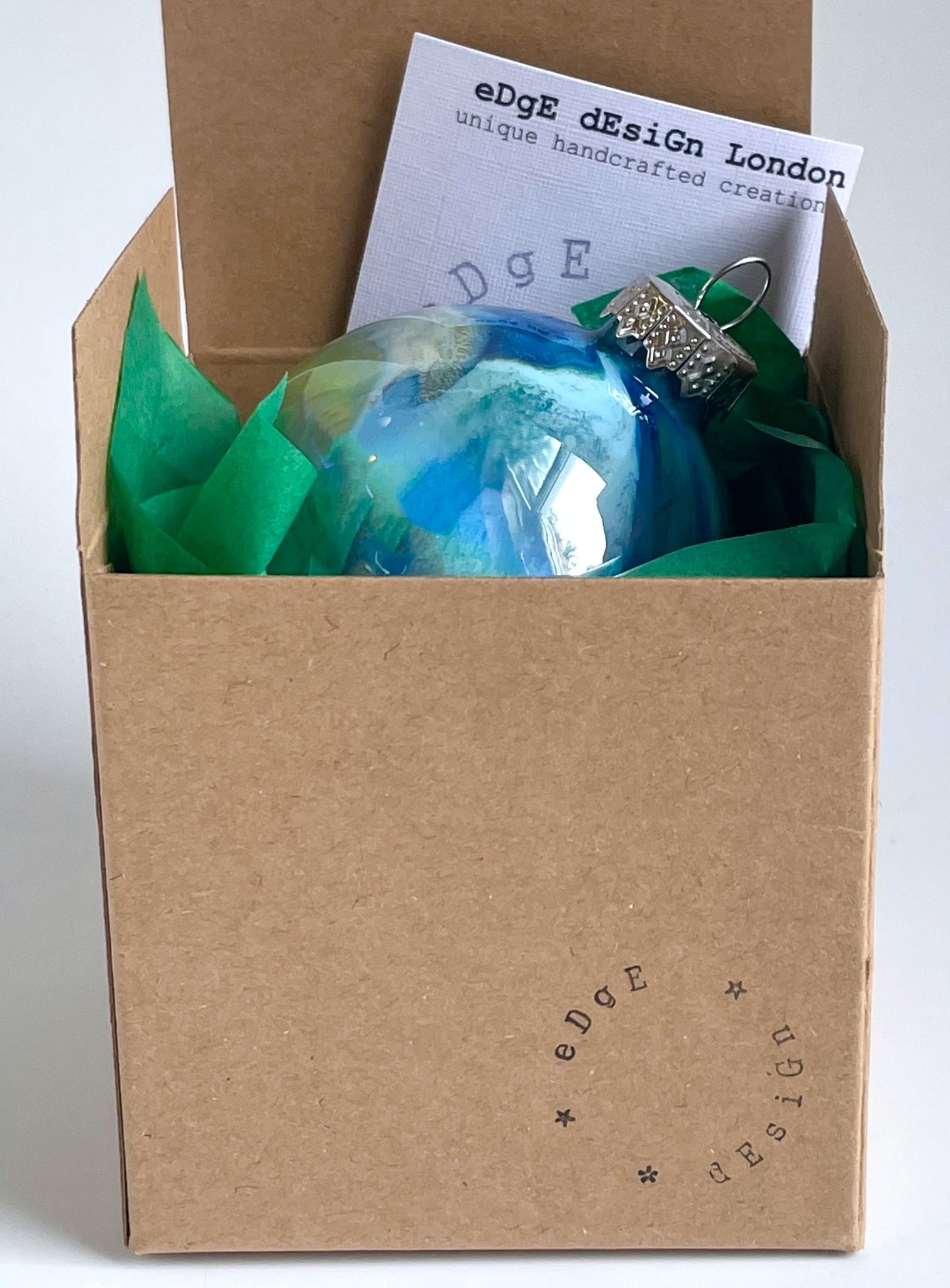 Each bauble comes in a gift box protected by tissue paper and a ribbon as shown. Ribbon colours can be changed upon request. Please note that the colours on the baubles may differ slightly due to monitor settings. Your selection of baubles will be shipped within 1-2 working days. All items will be shipped in protective packaging.